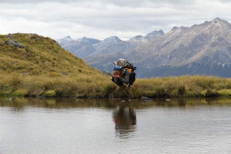 Hierher kommen nur die Keas und unser Kamerateam. Das Wasser der Hochmoore ist trinkbar.