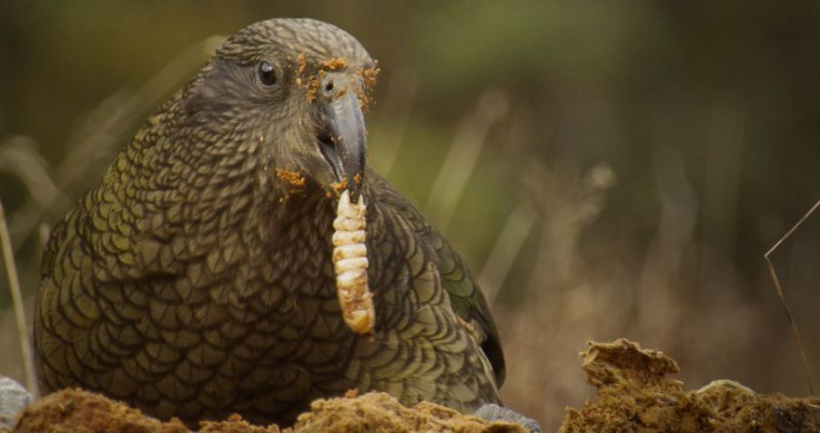 Keas sind Allesfresser. Sie lieben Insektenlarven ebenso wie Beeren und Blüten.