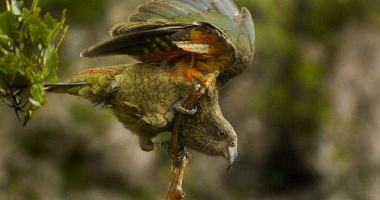 Die Körperoberseite von Keas ist dem Grün ihrer Umgebung angepasst, aber wenn sie fliegen, dann zeigen sie die ganze Pracht ihres Gefieders.