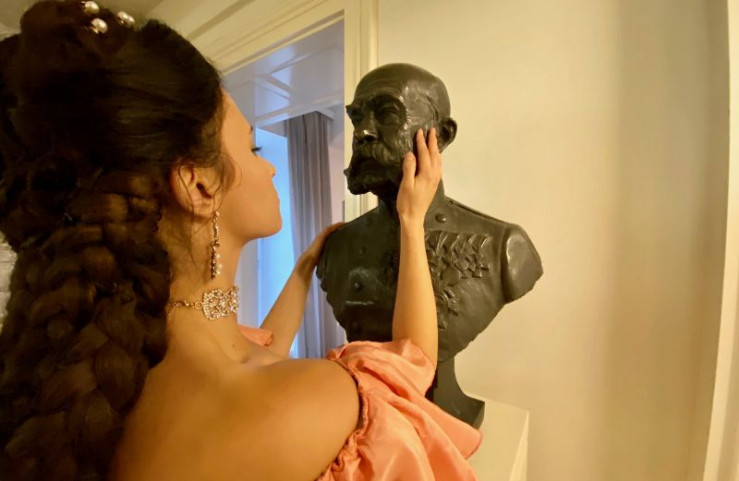 Sisi (Daniela Spreitzhofer) mit Franz-Joseph-Büste.