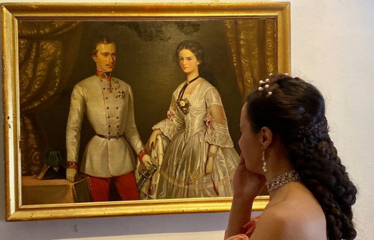 Sisi (Daniela Spreitzhofer) betrachtet ein Gemälde des Kaiserpaares.