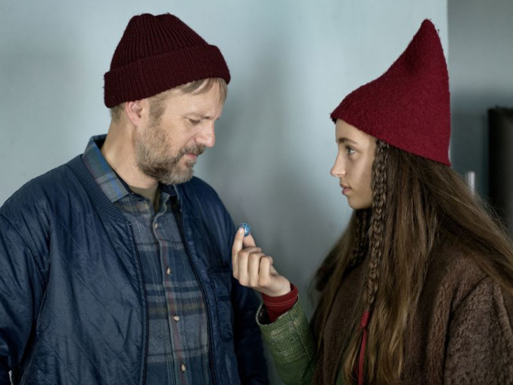 Tinka (Josephine Chavarria Hßjbjerg) zeigt Storm (Troels Lyby) die Botschaft der Briefkugel.