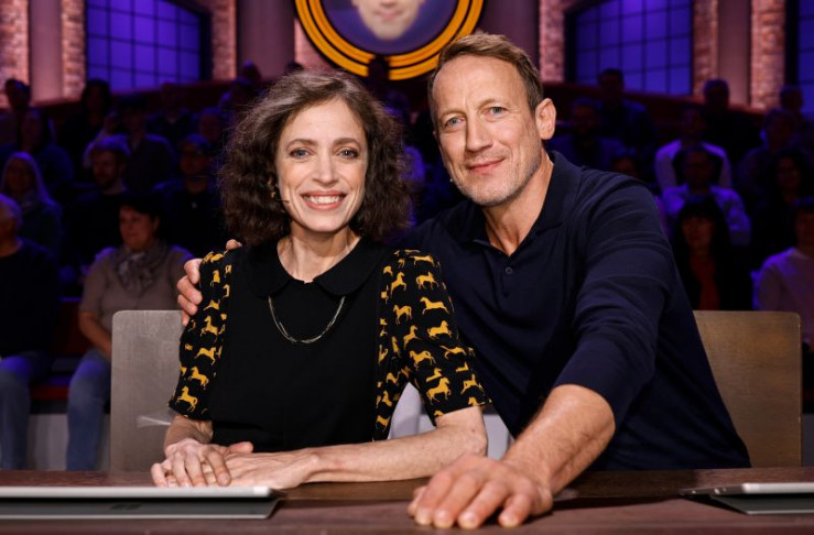 Rateteam-Kapitän Wotan Wilke Möhring (r.) mit Schauspielerin Anna Thalbach (l.).