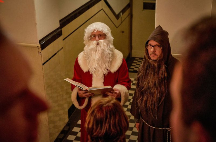 Haben sich breitschlagen lassen, für die Nachbarskinder aufzutreten: Nikolaus Prange (Bjarne Mädel, l.) und Knecht Ruprecht Rohde (Olli Dittrich, r.)