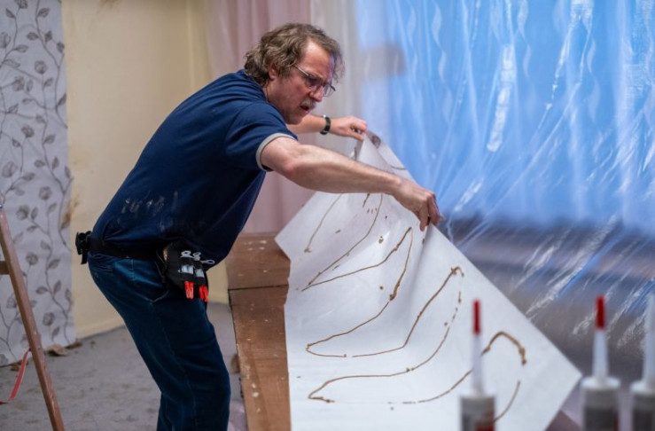 Ralf Prange (Bjarne Mädel) schämt sich nach der verhunzten Renovierungsaktion vor Dörte (Katharina Marie Schubert)