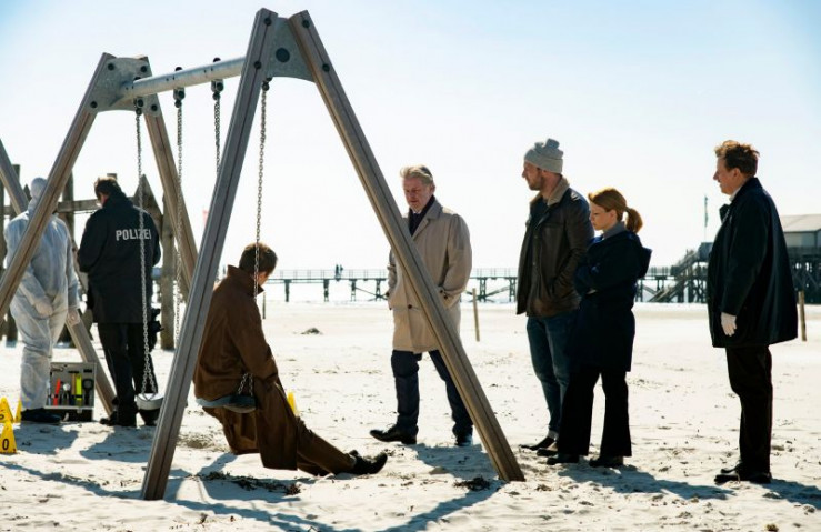 Das erste männliche Opfer! Polizeichef Bergmann (Max Herbrechter, lMitte), Ria Larsen (Karoline Schuch), Michael Brandt (Christoph Letkowski) und Mattern (Ronald Kukulies, re.) sind überrascht.