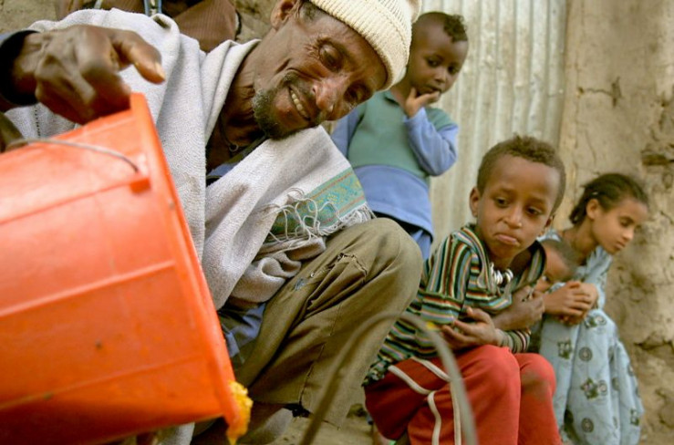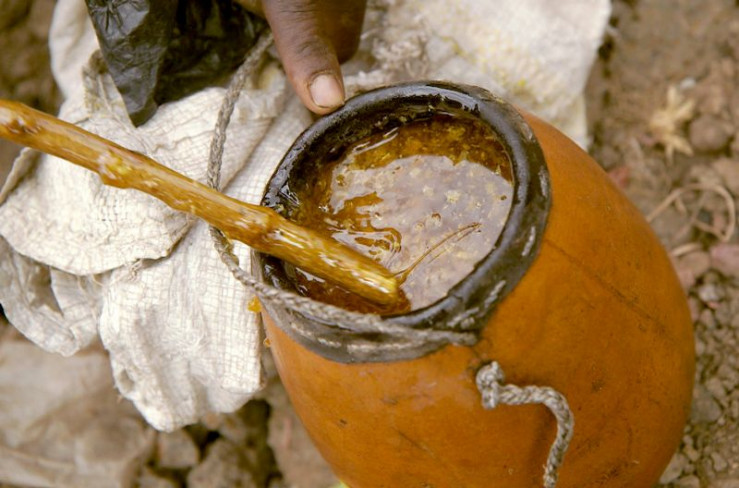 Aby zeigt den Honig seinen potenziellen Käufern. Bis zum Markt in Lalibela sind es 30 Kilometer, die Aby in eineinhalb Tagen zu Fuß zurücklegt.