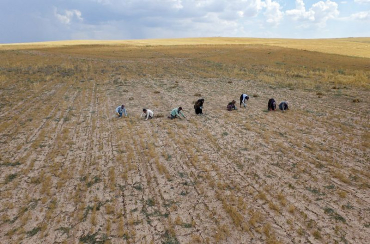 Bei der Kreuzkümmelernte, die im Juli stattfindet, arbeiten die Tagelöhner in der prallen Sonne auf dem Feld. Nur einige Wolken spenden ab und zu Schatten.