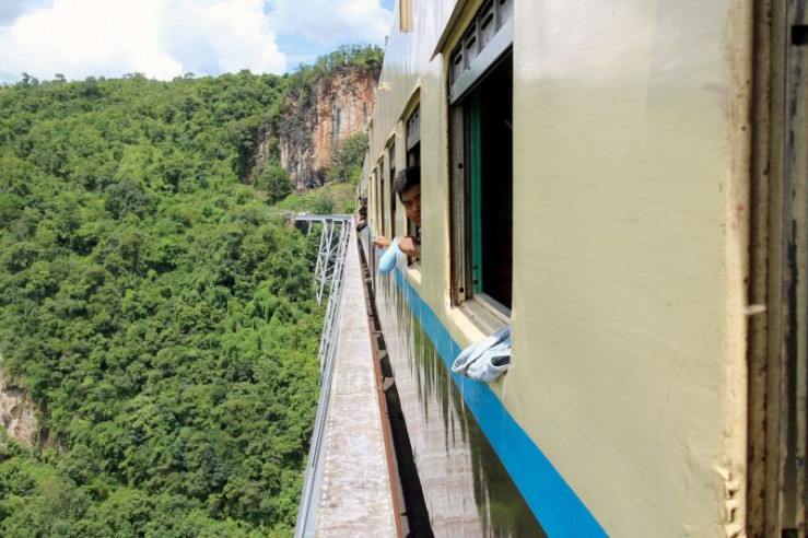 Zugführer U Zaw Win fährt seit 20 Jahren auf der Strecke und kennt die Herausforderungen der alten Gleise. Noch bis vor wenigen Jahren waren Fotos der strategisch wichtigen Brücke streng verboten, und auch heute sind die Pfeiler durch Minenfelder gesichert - aus Angst vor Rebellen. Fast 700 Meter lang und 250 Meter über dem Niveau des Flusses erhebt sich das majestätische Bauwerk, dessen Überquerung einen auch heute noch mit Respekt erfüllt, bevor der Zug in der Dunkelheit eines Tunnels verschwindet. Für die Menschen, die den Zug jeden Tag nutzen, ist das Alltag. Mit der Bahn ist man einfach schneller auf der anderen Seite des Tals als mit dem Auto - solange nicht unvorhergesehene technische Probleme auf der Strecke auftreten.