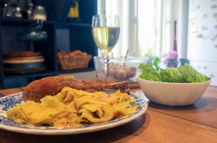 In Zagreb wird Purica s mlincima serviert: gespickter Truthahn mit getrockneten Teigfladen, die mit Bratensaft übergossen werden.