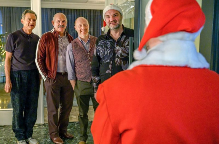 Ein aufwühlendes Wiedersehen mit einer verflossenen Liebschaft (Lukas Spisser, re.) erwartet Hannes (Martin Leutgeb) und Oskar (Simon Schwarz), als sie mit einem befreundeten Paar (Fritz Egger, Alexander E. Fennon, v.r.) den Weihnachtsabend begehen.