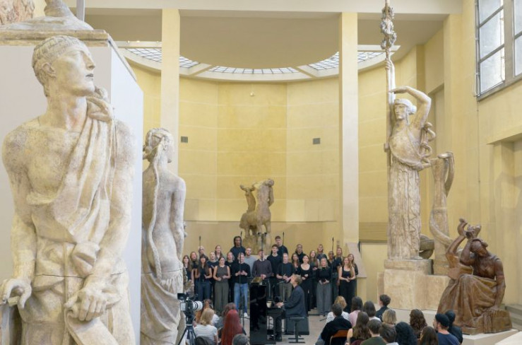 Seltener Auftritt in der Skulpturenhalle des Pariser Bourdelle-Museums: Tom Odell am Klavier, begleitet von einem Chor unter der Leitung von Mark De-Lisser