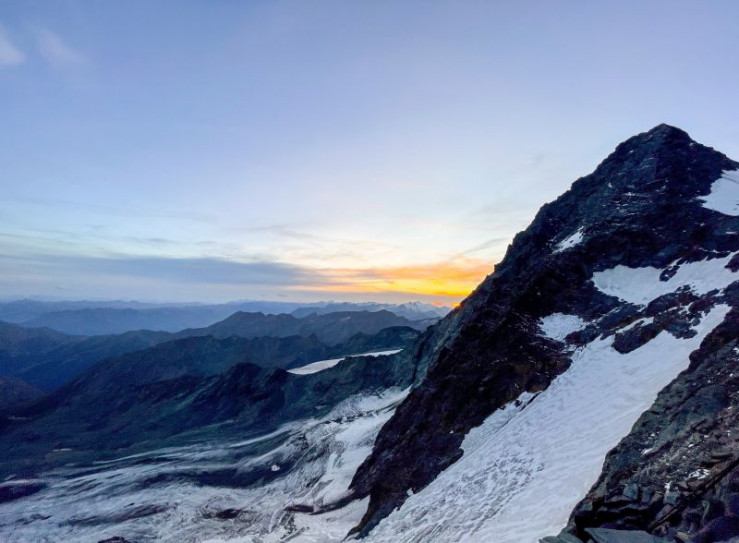Felsstürze, Hangrutschungen, Gletscherschmelze und auftauender Permafrost im Hochgebirge - die Alpenregion ist einem drastischen Wandel unterworfen. Im Bild: Abendstimmung: Blick von der Erzherzog Johann Hütte auf den Großglockner Richtung Westen.
