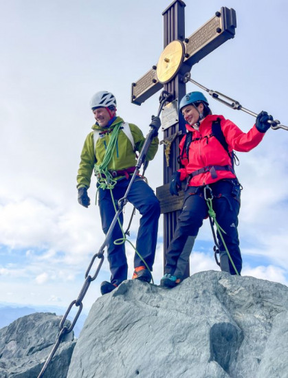 Felsstürze, Hangrutschungen, Gletscherschmelze und auftauender Permafrost im Hochgebirge - die Alpenregion ist einem drastischen Wandel unterworfen. Im Bild: Lisa Gadenstätter und der Salzburger Landesgeologe Gerald Valentin am Gipfel des Großglockners auf 3.789 Meter Seehöhe. Auch hier liegt der Felsen im Sommer mittlerweile im Freien. Die Entwicklung des Permafrost und Felsbewegungen sollen hier künftig mit Sensoren wissenschaftlich das ganze Jahr über gemessen werden.
