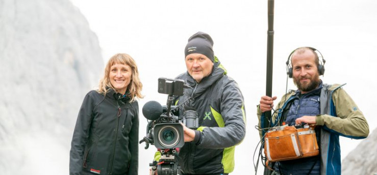 In dieser Produktion begleiten wir drei lokale Protagonisten in den Südtiroler und Trientner Dolomiten. Der Meraner Landschaftsfotograf Georg Tappeiner begleitet den Sterzinger Bergsteiger Hanspeter Eisendle bei einer seiner Klettertouren an der Südwand der Marmolata mit dem Ziel, die besondere Verbindung zwischen Menschen und Berge bildlich einzufangen. Parallel gewährt eine sportliche und bergaffine junge Frau, Magdalena Mittersteiner aus Lana, Einblicke in ihre Gedanken und zu ihrem Verhältnis von Berg, Mensch und Bilderflut. Im Bild: Karin Duregger, Manfred Unterpertinger und Martin Firi.