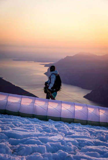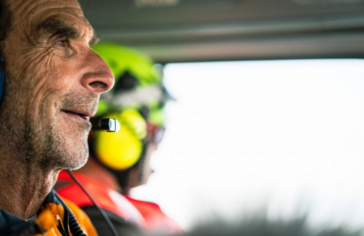 In dieser Produktion begleiten wir drei lokale Protagonisten in den Südtiroler und Trientner Dolomiten. Der Meraner Landschaftsfotograf Georg Tappeiner begleitet den Sterzinger Bergsteiger Hanspeter Eisendle bei einer seiner Klettertouren an der Südwand der Marmolata mit dem Ziel, die besondere Verbindung zwischen Menschen und Berge bildlich einzufangen. Parallel gewährt eine sportliche und bergaffine junge Frau, Magdalena Mittersteiner aus Lana, Einblicke in ihre Gedanken und zu ihrem Verhältnis von Berg, Mensch und Bilderflut. Im Bild: Hanspeter Eisendle im Hubschrauber.