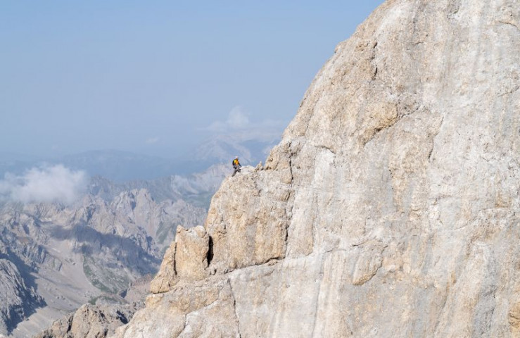 In dieser Produktion begleiten wir drei lokale Protagonisten in den Südtiroler und Trientner Dolomiten. Der Meraner Landschaftsfotograf Georg Tappeiner begleitet den Sterzinger Bergsteiger Hanspeter Eisendle bei einer seiner Klettertouren an der Südwand der Marmolata mit dem Ziel, die besondere Verbindung zwischen Menschen und Berge bildlich einzufangen. Parallel gewährt eine sportliche und bergaffine junge Frau, Magdalena Mittersteiner aus Lana, Einblicke in ihre Gedanken und zu ihrem Verhältnis von Berg, Mensch und Bilderflut. Im Bild: Hanspeter Eisendle.