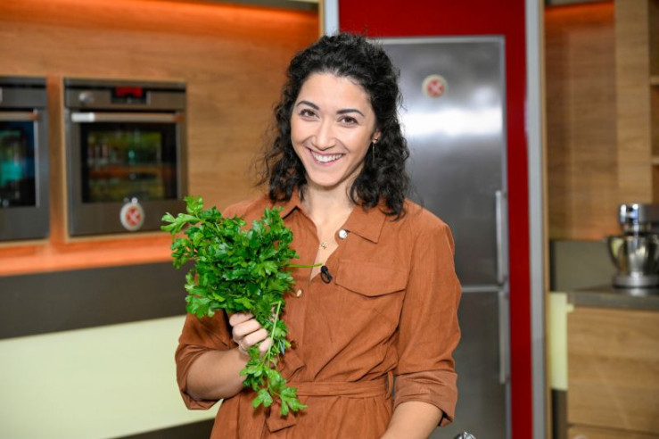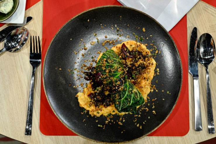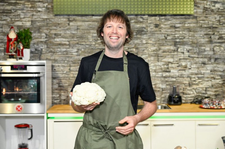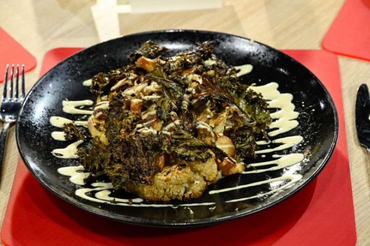 Vegetarisches Wintergericht: Blumenkohlsteak mit Maronenpüree, gebratenen Kräuterseitlingen, Miso-Mayonnaise und Grünkohl-Chip von Roman Kadletz