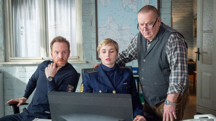 Kommissar Pöhlmann (Dominic Boeer, l.) erfährt von Regine Hagen (Birte Berg, 2.v.l.), Frieda (Gisela Straehle, M.) und Heinrich Witt (Jochen Kolenda, r.), dass die sich gerade erst den Traum einer Alters-WG erfüllt haben. Doch nun ist Mitbewohnerin Ilse Eger ermordet worden. Am Abend zuvor hat die Tote ihren Geburtstag mit zahlreichen Gästen gefeiert. Ist der Mörder unter den Gästen gewesen?