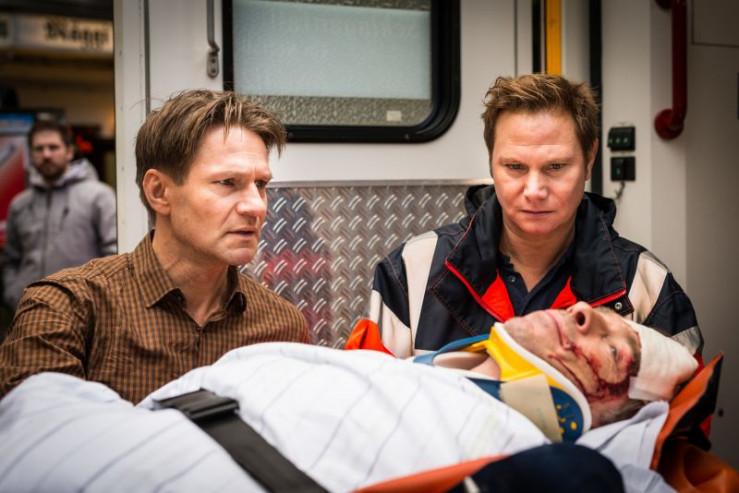 Mattes (Matthias Schloo, r.) und Peter Martinek (Thure Riefenstein, l.) beobachten Werner Kargers Geständnis.