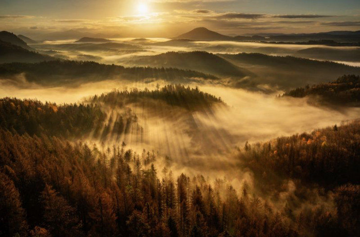 Die Böhmische Schweiz: Ort, der märchenhafte Romantik ausströmt. Berge, dichte Buchenwälder, wilde Täler, Labyrinthe aus Sandstein mit Höhlen und Schluchten.