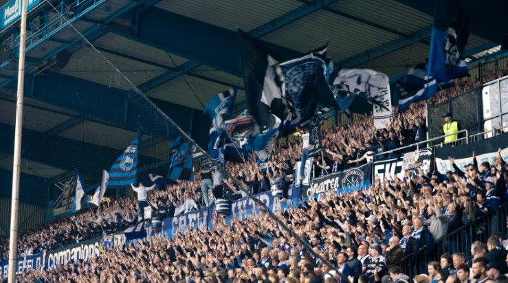 Fans der Armenia auf der Südtribüne des Bielefelder Stadions.