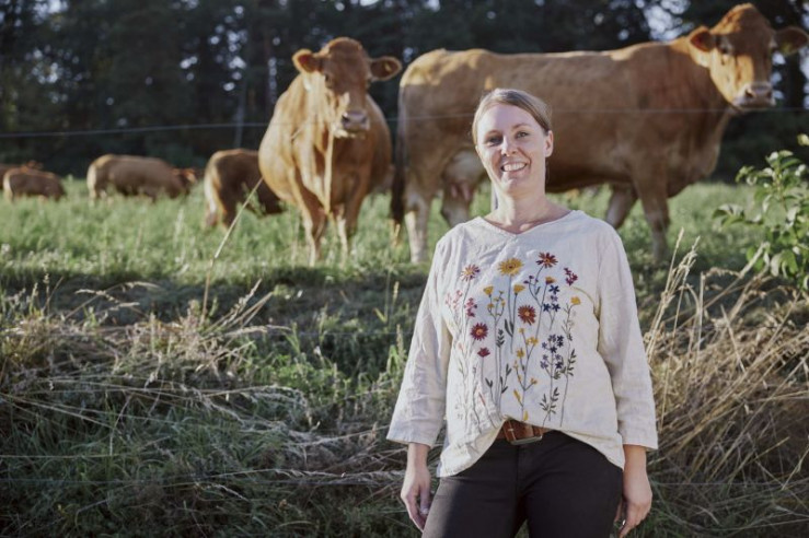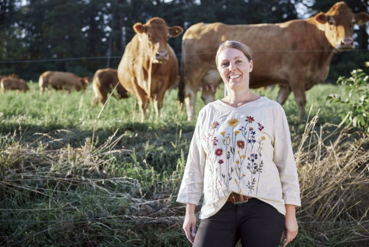 Petra Sollmann vor Kühen auf der Weide. Weiteres Bildmaterial finden Sie unter www.br-foto.de.