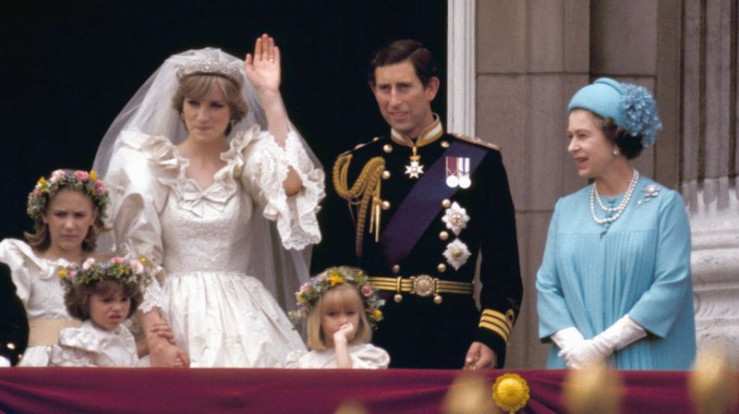 Prinz Charles und Prinzessin Diana mit Queen Elisabeth II an ihrer Hochzeit, 1981.