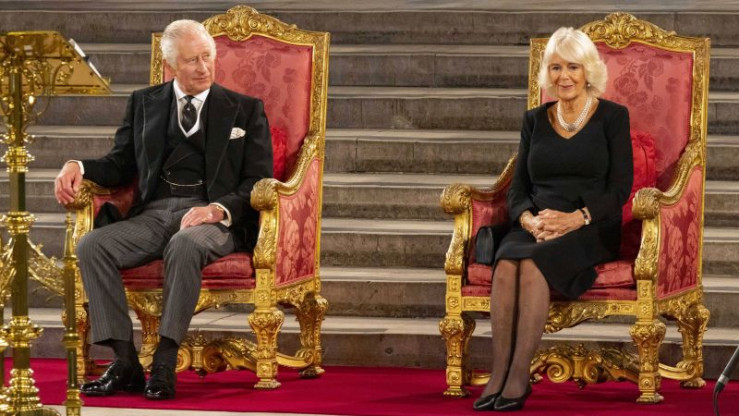 Der britische König Charles III. Und die britische Camilla, Queen Consort, nehmen am Montag, den 12. September 2022, nach dem Tod von Königin Elizabeth II. an der Präsentation der Ansprachen beider Houses of Parliament in der Westminster Hall im Palace of Westminster im Zentrum von London teil.