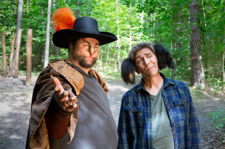 Fritz (Guido Hammesfahr, links) ist skeptisch. Was führt die Knusperhexe (Daniel Zillmann, rechts) nur im Schilde?