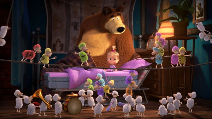 Gerade macht sich der Bär für den Winterschlaf bereit, da möchte ihm Mascha Gesellschaft leisten. Sie probiert es auch mit dem Winterschlaf. Doch bis ihr Kissen, Decke und Matratze genehm sind, muss der Bär viele Male aufwachen. Mascha möchte lernen Schäfchen zu zählen, aber sie sollen nummeriert und bunt sein, singen, tanzen und Zirkuskunststücke vorführen. Ob der Bär diese Nacht noch die Ruhe für seinen Winterschlaf findet?