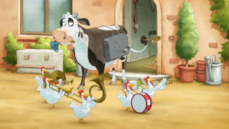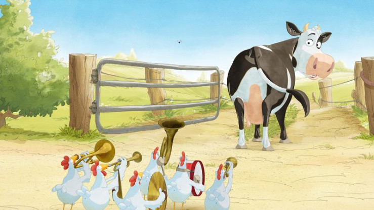 Die Kuh Lieselotte möchte gerne wie die musikalischen Hühner ein Instrument spielen. Wenn aber eine große Kuh auf kleinen Hühnerinstrumenten spielt, kommt nur Tohuwabohu heraus. Als Lieselotte auf den Küchenutensilien der Bäuerin Musik machen will, hat die Bäuerin verständlicherweise etwas dagegen, womit soll sie backen und kochen? Da entdeckt Lieselotte ihr eigenes Instrument: den Taktstock, oder besser, den Taktschwanz.