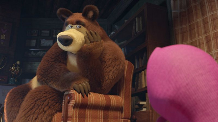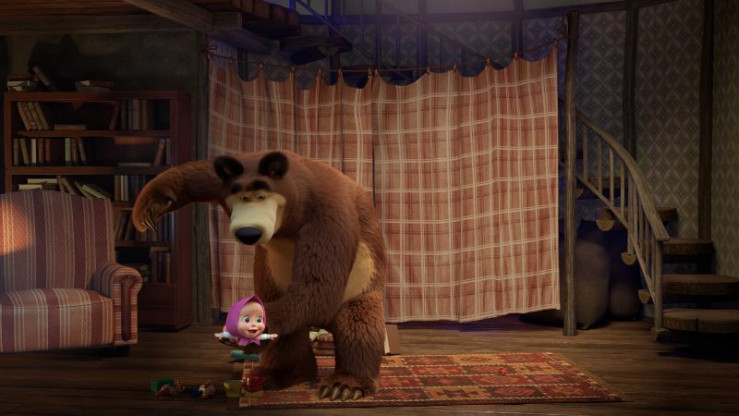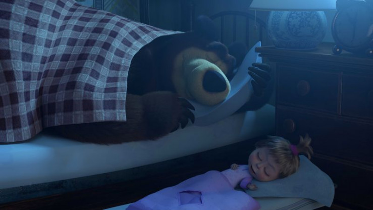 Nachdem sich Mascha und ihr Teddybär sanft durch das Zimmer gewirbelt haben, macht das Mädchen das Licht aus und deckt den plüschigen Freund zu. Bär bekommt das mit und beschließt, seine kleine Freundin ebenfalls auf die Traumreise zu schicken.
