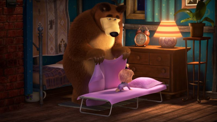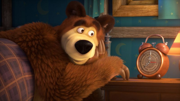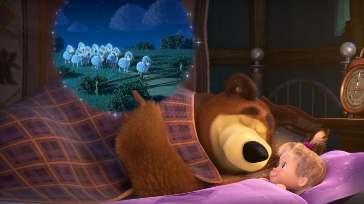 Gerade macht sich der Bär für den Winterschlaf bereit, da möchte ihm Mascha Gesellschaft leisten. Sie probiert es auch mit dem Winterschlaf. Doch bis ihr Kissen, Decke und Matratze genehm sind, muss der Bär viele Male aufwachen. Mascha möchte lernen Schäfchen zu zählen, aber sie sollen nummeriert und bunt sein, singen, tanzen und Zirkuskunststücke vorführen. Ob der Bär diese Nacht noch die Ruhe für seinen Winterschlaf findet?