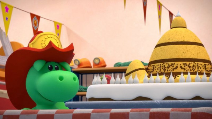 Zum 10-jährigen Dienstjubiläum von David, dem Chef der Feuerwehr, soll es eine große Torte geben. Aber Fumé zermatscht unabsichtlich den Kuchen. So bekommt Grisu eine Tortenback-Mission.