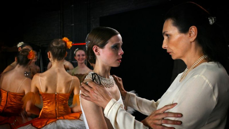 Akademiedirektorin Margot Walser (Katerina Medvedeva, r.) ist schockiert über das Aussehen von Star-Tänzerin Rebecca Bennet (Lisa Pavlov, l.).