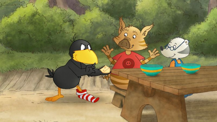 Der kleine Rabe Socke klaut seinen Freunden das Spielzeug. Er simuliert Krankheiten, um nicht mithelfen zu müssen. Er spuckt in die Nudelsauce, wenn er meint, zu wenig abzubekommen, und im Ausredenerfinden ist er spitze. Will man so einen als Freund? Unbedingt! Dieser freche Vogel mit der Ringelsocke hat das Herz auf dem rechten Fleck. Egal, was er ausfrisst, er findet Wege, um seine Fehler wieder gut zu machen, und lässt seine Freunde dabei nie im Stich. Seine Abenteuerlust steckt an, seine Lebensfreude reißt mit und seine Ideen sind unschlagbar. Der vorlaute kleine Rabe nimmt sich manchmal ziemlich wichtig, merkt aber auch, wenn er zu weit gegangen ist und anderen schadet. Sich anzupassen ist nicht die Sache von Socke, sich bei Missgeschicken zu entschuldigen schon - das macht den Buch- und Kinohelden zum Vorbild. Schauplatz der zwölfminütigen Episoden ist der Wald, ein riesiger Abenteuerspielplatz für Socke und seine Freunde mit viel Platz, sich auszuprobieren und spielerisch die Kräfte zu messen.