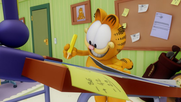 Garfield ist ein fetter, fauler Kater, der gerne frisst und schläft. Sein Leibgericht ist Lasagne. Das liegt wohl daran, dass er in "Mama Leone's Italian Restaurant" das Licht der Welt erblickte. Ist Garfield gerade nicht mit Fressen oder Schlafen beschäftigt, was recht selten der Fall ist, sieht er fern, ärgert seinen Besitzer Jon oder Hund Odie. "The Garfield Show" series © 2008 Dargaud Media - All right reserved © PAWS - GARFIELD and GARFIELD CHARACTERS ? & © Paws. Inc. Basierend auf dem Charakterentwurf von Jim Davis