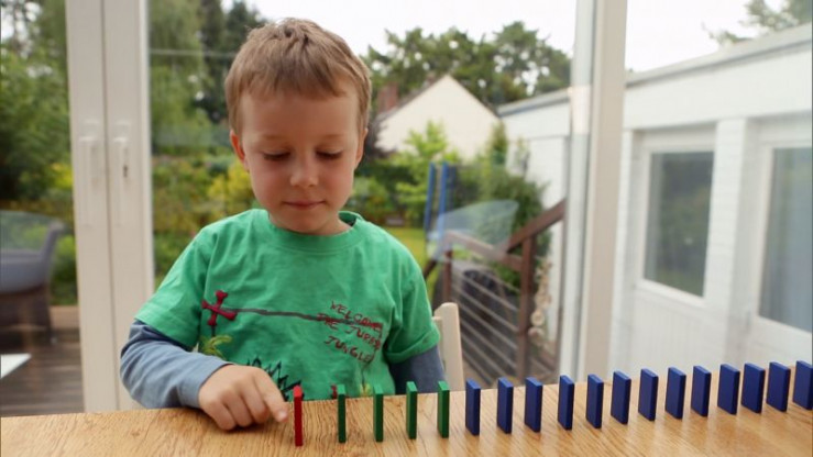 In der "Sendung mit dem Elefanten" geht es um Bewegung. In einer Zeitlupenaufnahme gibt es zu sehen, wie die Dominosteine nach und nach umfallen.