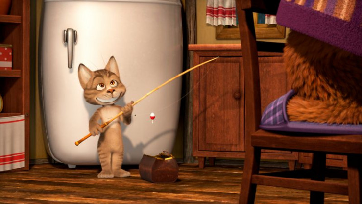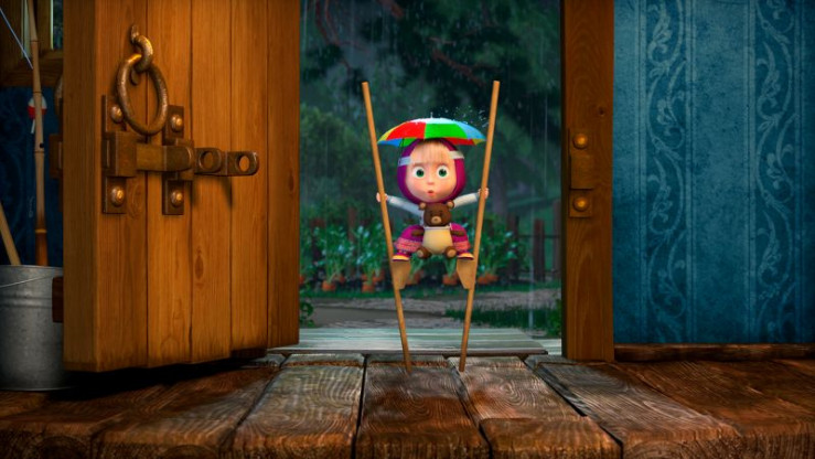 Mascha will ihre Plüschtiere mit Zeichentrickfilmen weiterbilden. Doch das Regenwetter macht ihr einen Strich durch die Rechnung - kein Empfang. Sie versucht es beim Bären. Der stellt gerade sein Haus auf den Kopf. Eine Maus hat sich einquartiert und lässt sich weder vom Bären, noch von der herbeigerufenen Katze einfangen. Schließlich landen Katz und Maus im Fernseher. Für Mascha ein gelungenes Beispiel, ihren Plüschtieren die Albernheiten des Trickfilms beizubringen.