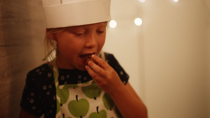 Papa und Vilda backen Lebkuchen. Vilda stibitzt Teig und isst ihn, obwohl ihr Vater gesagt hat, dass das nicht gut ist für den Magen. Aber Vilda macht immer weiter, bis sie sich übergeben muss. Nun bereut sie, den Teig gegessen zu haben. Papa ist mit ihr im Bad und tröstet sie, als der Feueralarm angeht. Die Lebkuchen sind im Ofen verbrannt. Macht nichts, denn Vilda möchtet sowieso keine mehr essen.