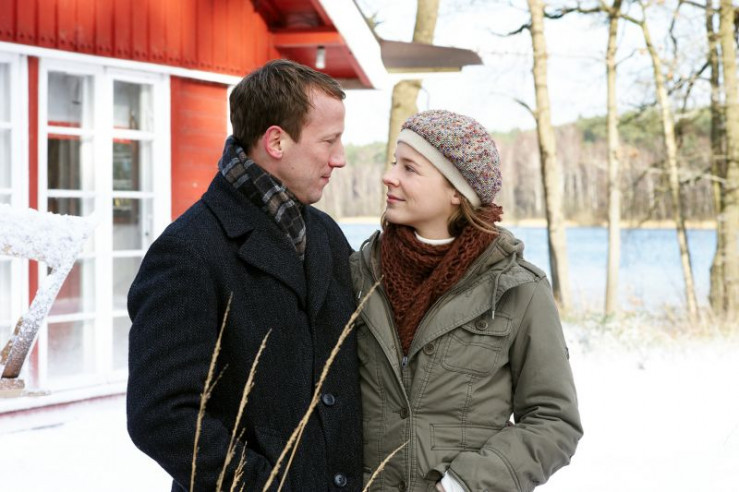 Marie Johanson (Bernadette Heerwagen, r.) und Leo Schreiber (Wotan Wilke Möhring, l.) vor Maries Elternhaus in Norwegen.