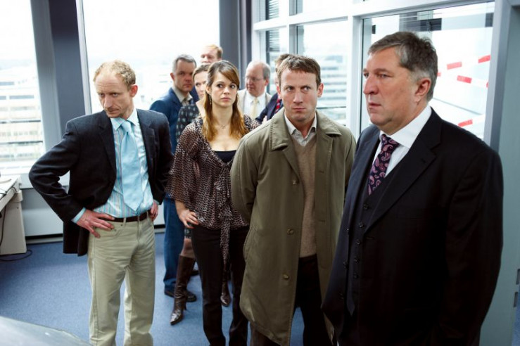 Nachdem sich Piehl umgebracht hat, soll Leo Schreiber (Wotan Wilke Möhring, r.) sein Nachfolger werden. Robert Hanke (Uwe Bohm, l.) ist darüber fassungslos. Susanne Pascheidt (Suzan Anbeh, M.) beobachtet die beiden.