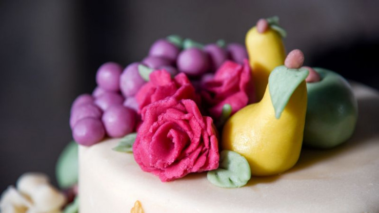 Marzipandekoration der Festtagstorte, von Hand gefertigt.