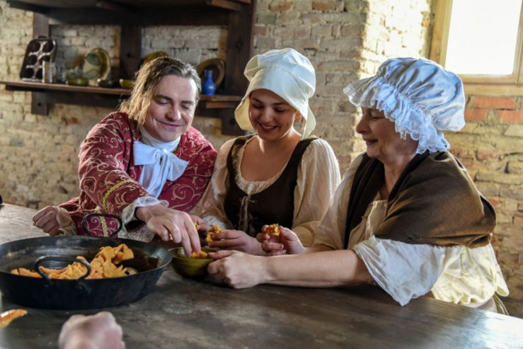 In der Barockzeit kommt nicht das Christkind mit Geschenken, sondern auch der Heilige Nikolaus. Er übergibt polierte Äpfel, vergoldete Nüsse, Lebkuchen, Orangen, aber auch lebende Tiere wie ein kleines Huhn oder einen zahmen Hasen, die dann auf dem Gutshof versorgt werden.
