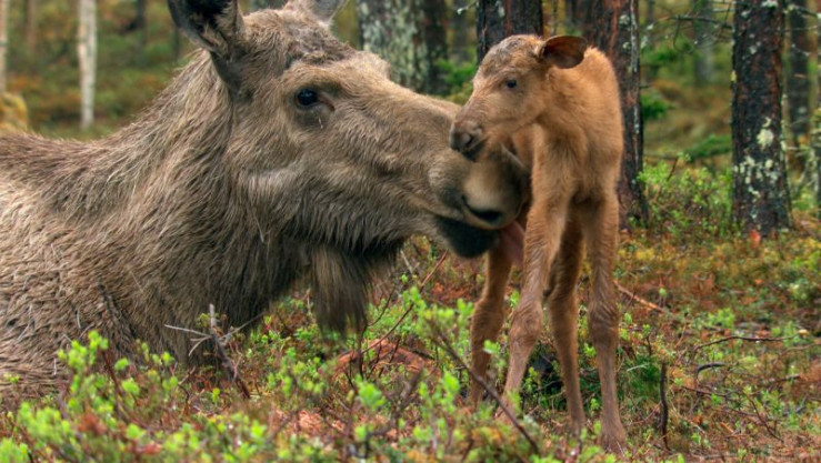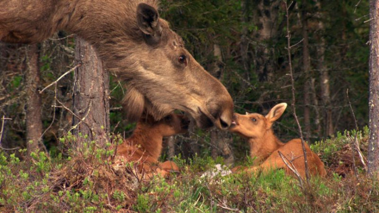 Wenn Schnee und Eis weichen, kommen im Mai die Elchkälber zur Welt. Jetzt beginnen üppige Zeiten in Schwedens Wäldern und Sümpfen. Nicht nur an den Bäumen, auch im Wasser finden die Elche reichlich zu fressen. Seerosen sind eine Delikatesse. Zu Mittsommer geht die Sonne in Schweden gar nicht mehr unter. Dieser Luxus währt nicht lange, denn schon bald darauf kündigen die Brunftschreie der Elche wieder den Herbst an. Mit ihrem mächtigen Geweih gehen die Elchbullen auf Brautschau. Doch letztlich entscheidet das Weibchen, mit wem es sich paaren will.