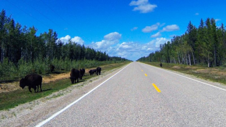 Highway mit Bisons.