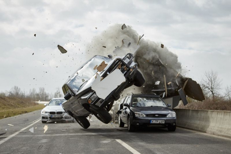 Bei der Verfolgungsjagd auf der Autobahn hebt der Fluchtwagen ab und verunglückt...