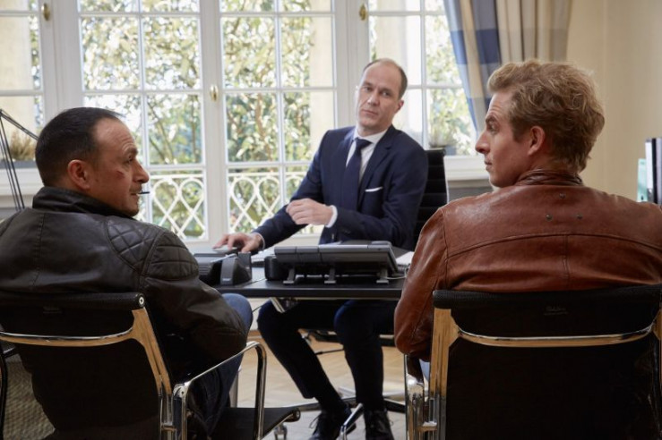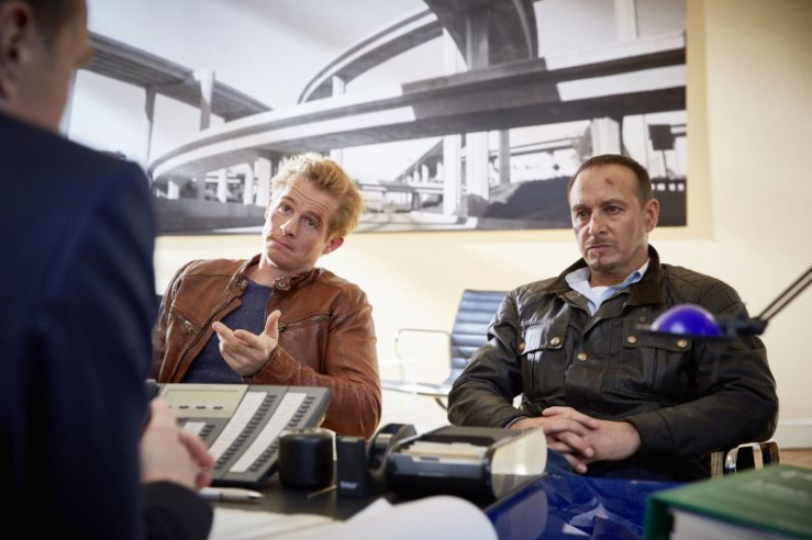 Paul (Daniel Roesner, l.) und Semir (Erdogan Atalay) befragen Kadelbach, Chef einer großen Straßenbaufirma, nach Middelstedt und dem Auftrag.