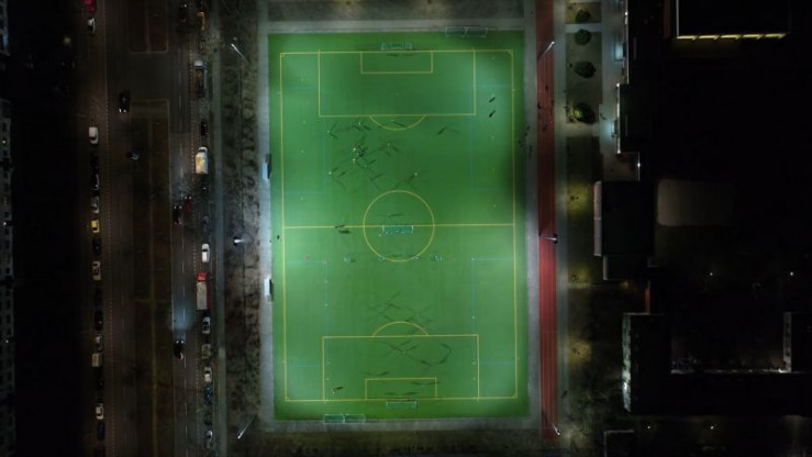 Der Fußballplatz bei den Dreharbeiten der Doku-Serie "Being Jér´me Boateng".